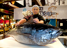 地元はもちろん、日本各地からイキのいい魚介類が運ばれ、お手頃価格で販売しています。名物は毎日3回開催しているマグロの解体ショー。漁港直送の生マグロが目の前でダイナミックにさばかれ、その場でにぎり寿司や丼で味わえます。また、好きな材料を選んで焼くバーベキューも人気。こだわりの干物「灰干サンマ」や和歌山の名産品など、お土産もたくさん販売している海鮮魚市場。
