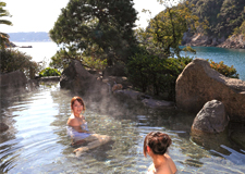 南紀を代表する温泉地で、恵まれた大自然のなかの美しい海の温泉郷として知られ、海に面したホテルや旅館では趣向を凝らした露天風呂を楽しむことができます。また駅と漁港前には無料の足湯も設置されています。