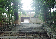 | 皇室の祖先神である天照大御神をお祀りする皇大神宮(内宮)、静けさの中に響きわたる玉砂利を踏みしめる音や、杉林の中から差し込む光の風景など、神秘的な雰囲気につつまれる場所はまさに、日本人のこころのふるさとです。 | |
